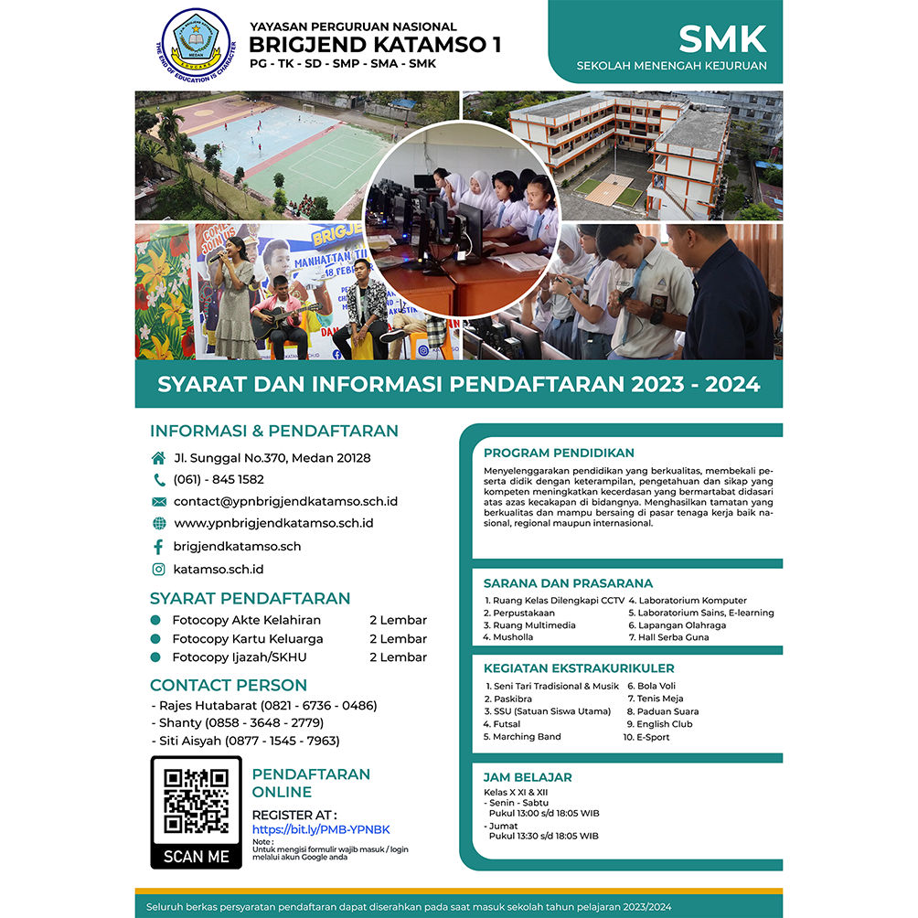 Silahkan menggunakan QR Code atau Link Formulir Online, untuk melakukan Pendaftaran Calon Siswa Baru di Yayasan Perguruan Nasional Brigjend Katamso, Tahun Pelajaran 2023-2024,Klik disini