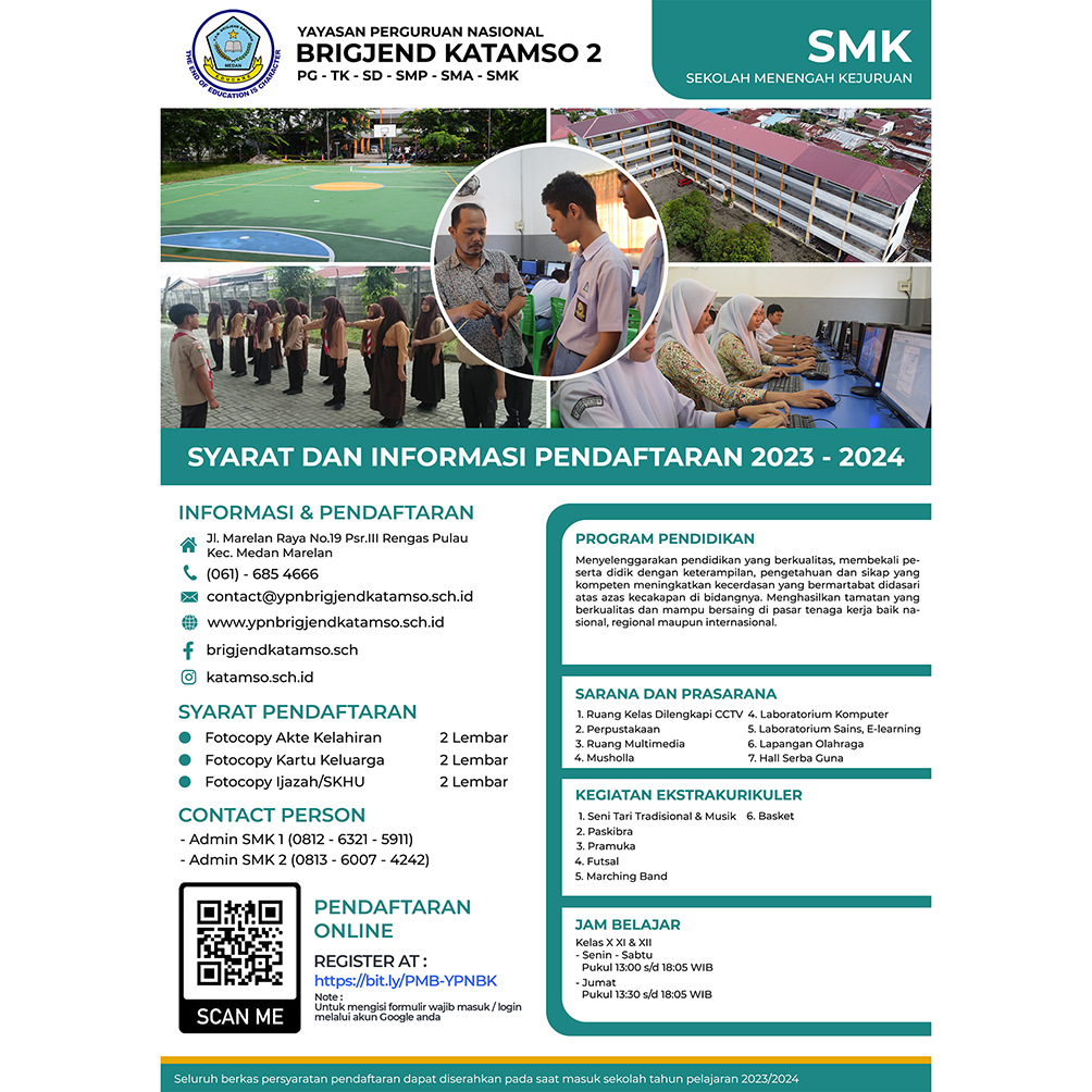 Silahkan menggunakan QR Code atau Link Formulir Online, untuk melakukan Pendaftaran Calon Siswa Baru di Yayasan Perguruan Nasional Brigjend Katamso, Tahun Pelajaran 2023-2024,Klik disini
