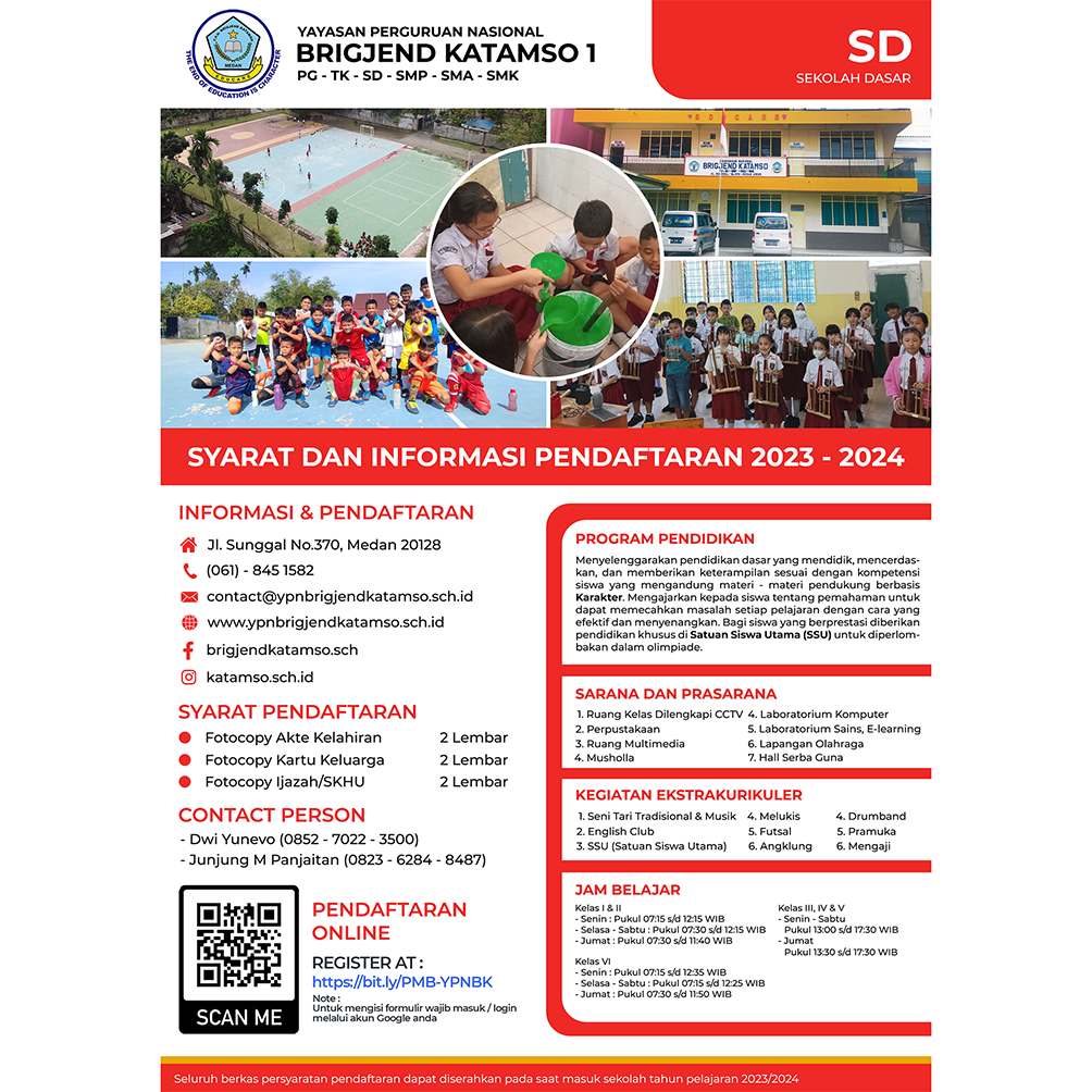 Silahkan menggunakan QR Code atau Link Formulir Online, untuk melakukan Pendaftaran Calon Siswa Baru di Yayasan Perguruan Nasional Brigjend Katamso, Tahun Pelajaran 2023-2024,Klik disini
